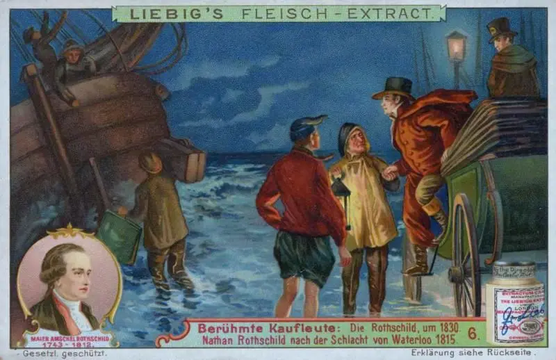 Salah satu mitos paling terkenal melekat pada Nathan Rothschild. Pada 1846, sebuah pamflet anonim beredar luas di Eropa, menuduh Nathan memanfaatkan informasi rahasia tentang kekalahan Napoleon di Pertempuran Waterloo untuk meraup keuntungan besar di pasar saham London. Dalam kisah itu, Nathan digambarkan menyeberangi Selat Inggris di tengah badai demi mendahului kabar resmi perang.